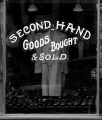 Outside a London second-hand shop: